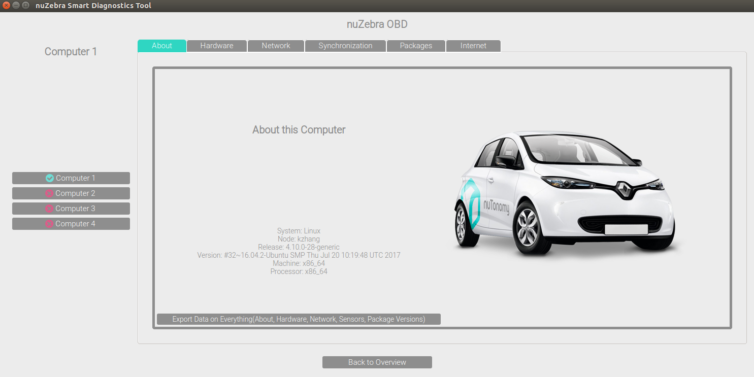 At the start of the internship, I was tasked with the formal project of creating a smart diagnostics tool for Team Car, the group that interfaced most closely with the autonomous cars themselves. I was to work alone on the project, and the only major requirements were that it could scan as many aspects of the car as possible and provide immediate feedback as to the car's condition, and that it remain easily usable, maintainable, and modifiable, as future users might find a new problem that they would want added. Doing my own research, I realized that Team Car was largely responsible for software road release testing, car maintenance and conversions, as well as code debugging and software release management. Whenever a problem was discovered, such as a car breaking down or the code not working, Team Car would have to go down a large list of possible problems and manually check them one by one. Observing them one time attempting to figure out why a car wouldn't start, I found that it could take them up to a week just to resolve an issue before even starting with testing or more productive items, and often times the same type problem would occur, making it seem like the team was running in circles. The goal for my tool was to automate this process, and prevent unnecessary manual labor from hindering progress on the software new releases. Thus I began to work on the tool, later naming it nuZebra (zebra is slang for "exotic diagnosis" in medical circles).